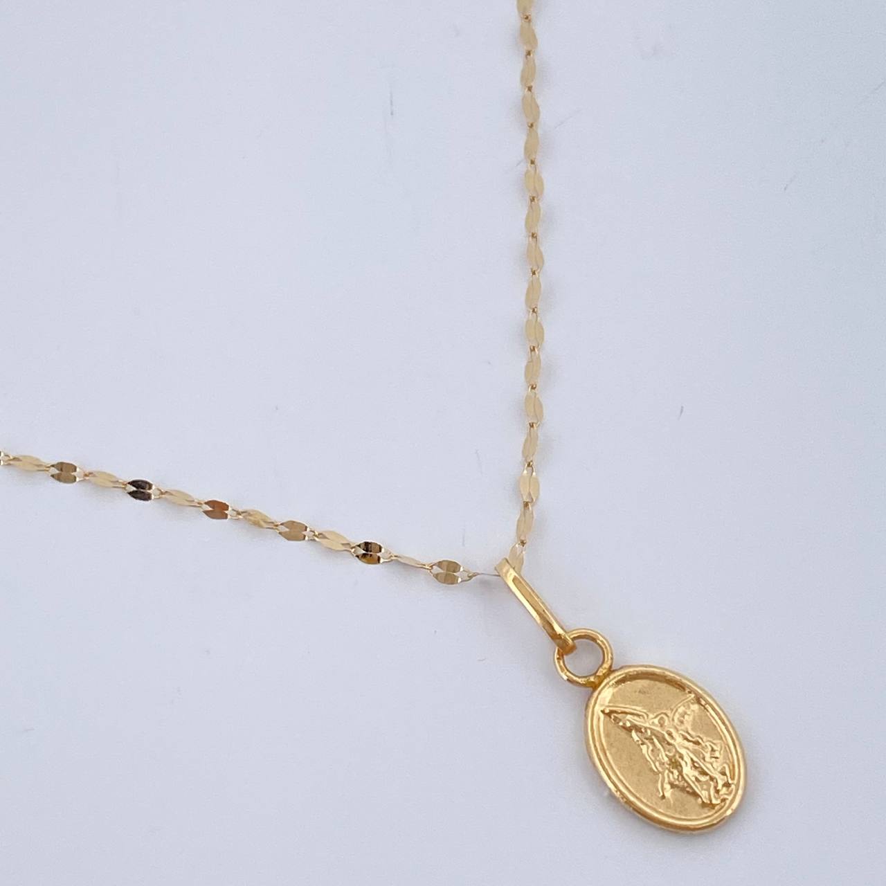Set Cadena y Dije Flor Espejo + San Miguel 0.65gr / 44.5cm / Oro Amarillo 18K $